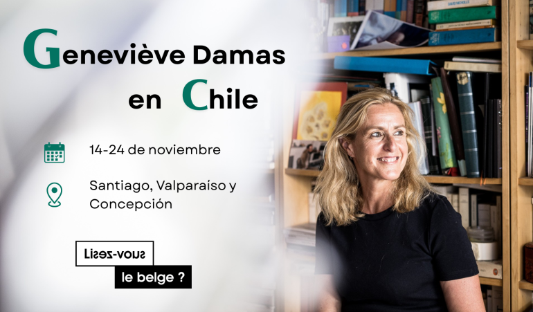La escritora de Bélgica francófona Geneviève Damas estará en Chile del 14 al 24 de noviembre para una gira literaria en el marco de la campaña Lee usted el Belga.