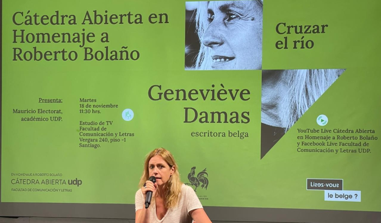 Son passage par Santiago a débuté à l’Université Diego Portales, où elle a participé à la Chaire en hommage à Roberto Bolaño aux côtés de l’auteur chilien Mauricio Electorat pour discuter de son roman Si tu passes la rivière. Geneviève Damas a également animé un atelier d’écriture narrative, invitant les étudiant.e.s à réfléchir à leur propre rapport à la création littéraire.