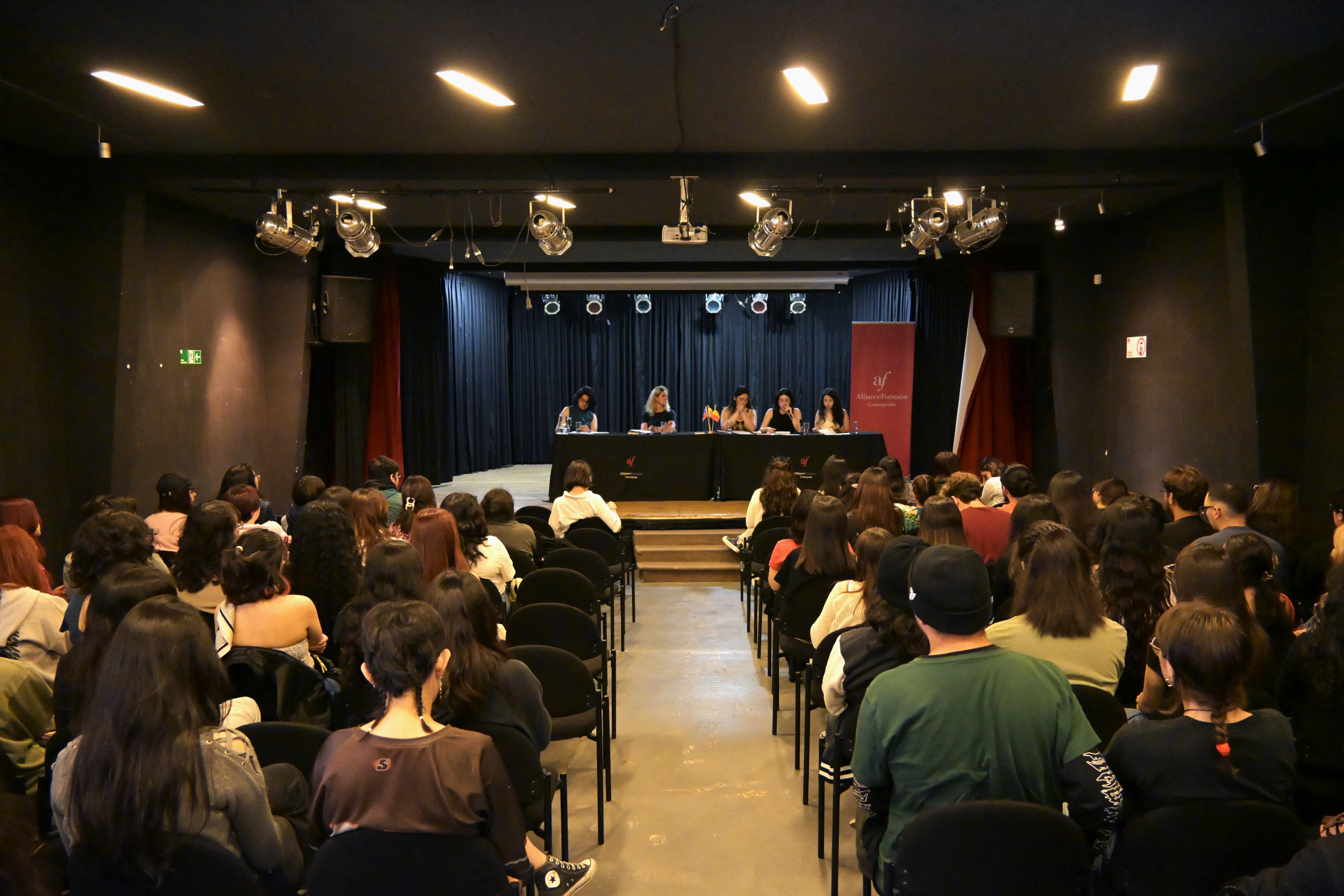 Geneviève Damas a par ailleurs été accueillie avec enthousiasme par les étudiant.e.s de divers établissements : l’Université Bernardo O’Higgins (Santiago), l’Université de Playa Ancha (Valparaíso), le Lycée Jean d’Alembert (Reñaca) et le Lycée Charles de Gaulle (Concepción).  Geneviève a en outre conduit un atelier d’écriture et donné une conférence Écrire le réel devant une salle comble à l’Alliance française de Concepcion, avec l’appui de quatre étudiantes de la Faculté des Sciences Humaines de l’Université de Concepcion pour l’interprétation consécutive.
